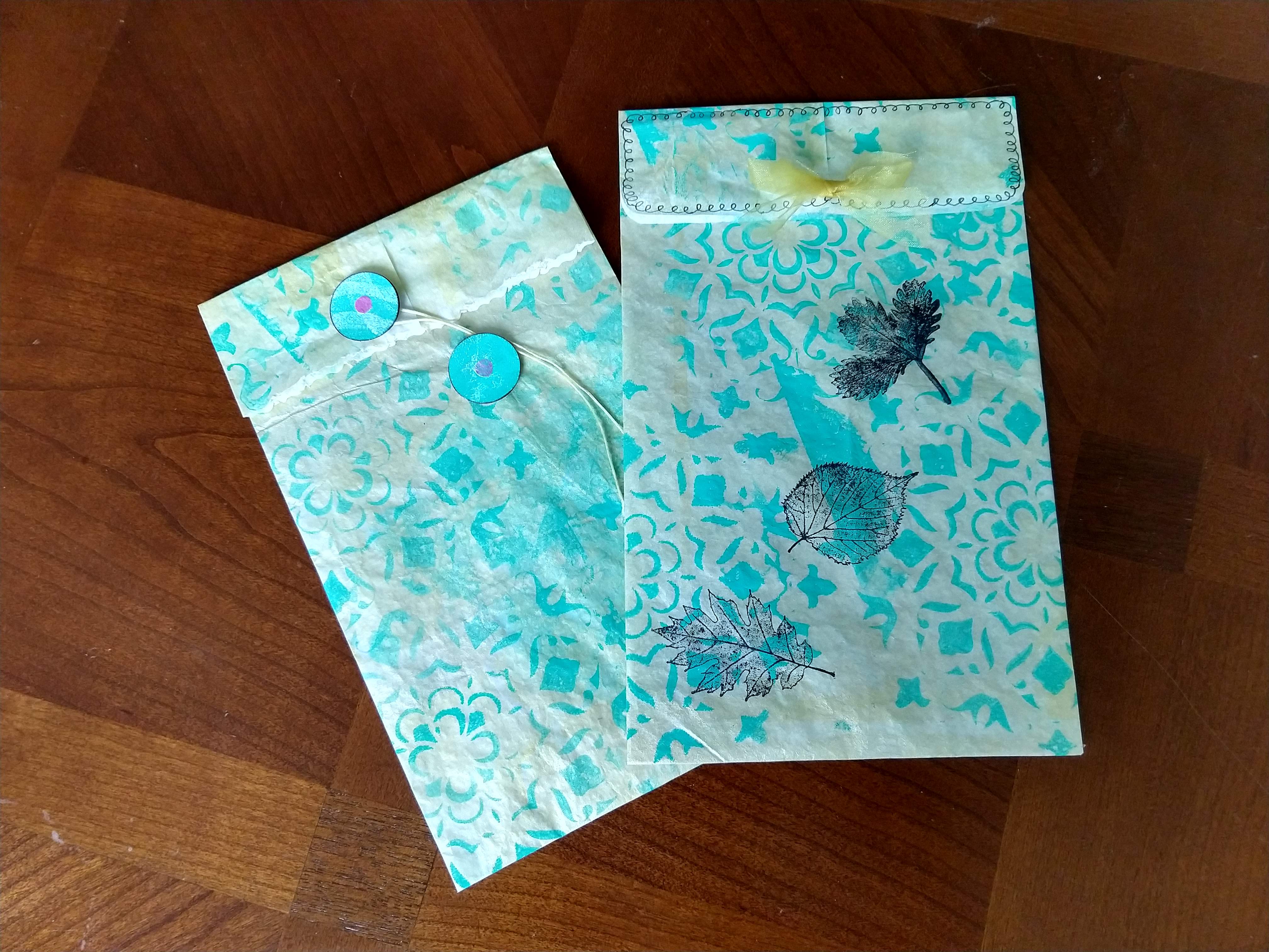 The envelopes were fun to assemble and add details to them. These were made in random sizes and I will probably use them as little gift bags. I plan to make more that are a standard card size. Not good for mailing, but nice for in person gift giving or to tuck in a box to be shipped.